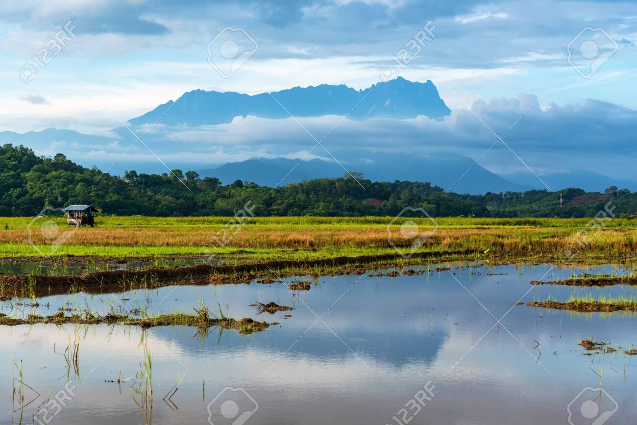 Reflection Of Mt Kinabalu At The Paddy Field In Kota Belud Sabah Borneo Malaysia Stock Photo Picture And Royalty Free Image Image 124366588